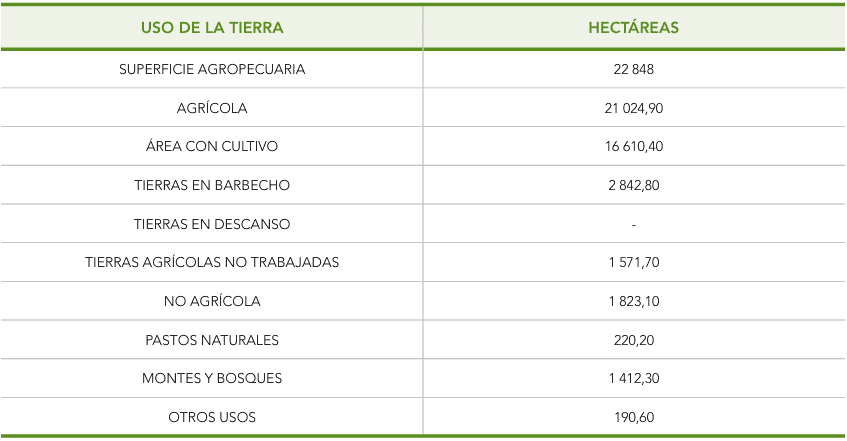 En el departamento de Tumbes, el área agropecuaria registrada durante el censo del 2012 fue de 22 848 hectáreas, las que ocupan el 4,9% del territorio. De esta superficie, 21 024,9 ha son agrícolas (áreas cultivadas, tierras en barbecho, tierras en descanso y tierras agrícolas no trabajadas) y 1 823,1 ha son no agrícolas (pastos naturales, montes, bosques y otros usos). Así, en el año 2012 la superficie agrícola tumbesina se desagregaba de la siguiente manera: