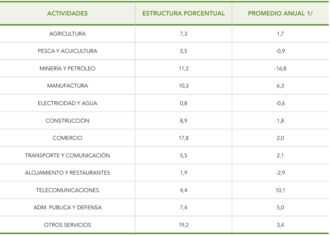 Cuadro N° 01: Valor agregado de la producción 2011-2020 (variación porcentual promedio anual)